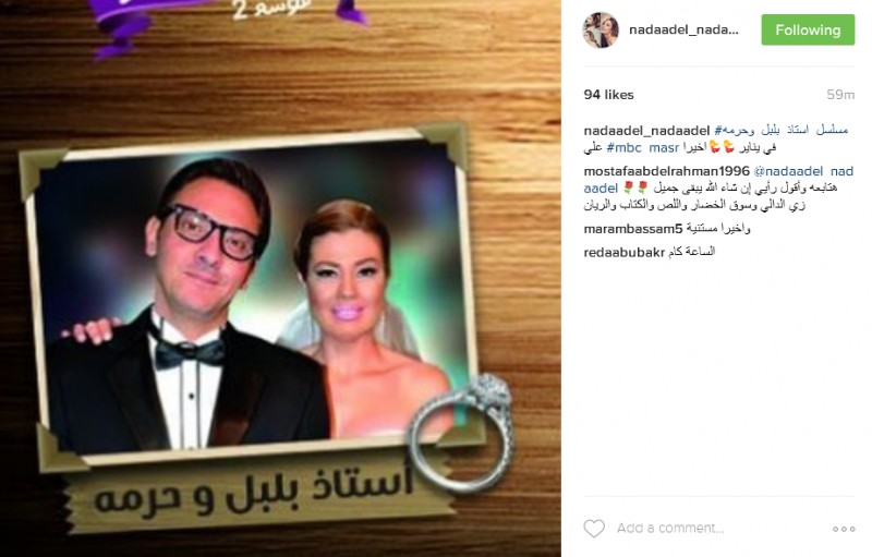 بالصور ندي عادل تروج لمسلسل أستاذ بلبل وحرمه ميداني