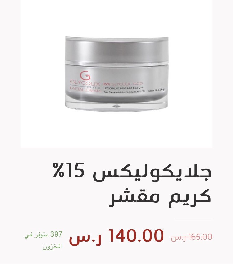 كريم جلايكولكس ايليت 15 الخاص في تجديد البشرة وازالة اثار التجاعيد و تفتيح البشرة 46جرام