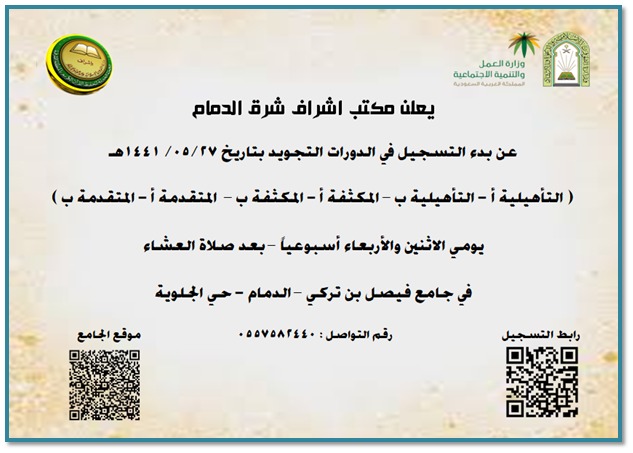 تحفيظ الشرقية On Twitter إعلان يعلن مكتب اشراف شرق الدمام عن بدء التسجيل في دورات التجويد تحفيظ الشرقية