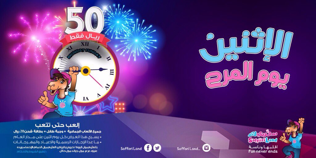 سفوري لاند Sur Twitter اقلبها وناسه مع عرض الاثنين العب حتى تتعب بـ 50 ريال و بطاقة شحن بـ 20 ريال الأثنين يوم المرح سفوري لاند أقلبها وناسة العثيم مول Https T Co 0dehc7bati