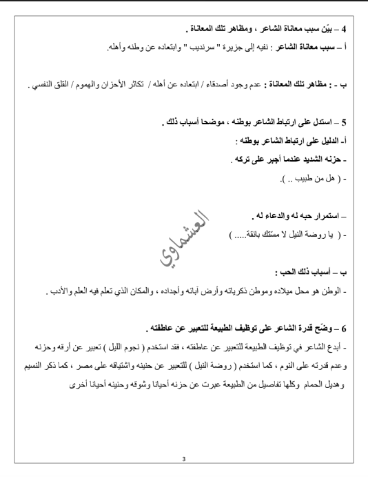 مذكرات العشماوي درس غربة وحنين لغة عربية الصف الحادي عشر مدرستي الكويتية