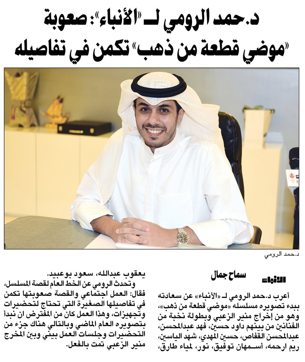جريدة الأنباء On Twitter د حمد الرومي لـ الأنباء صعوبة موضي قطعة من ذهب تكمن في تفاصيله Https T Co Tzt7lyyrjt