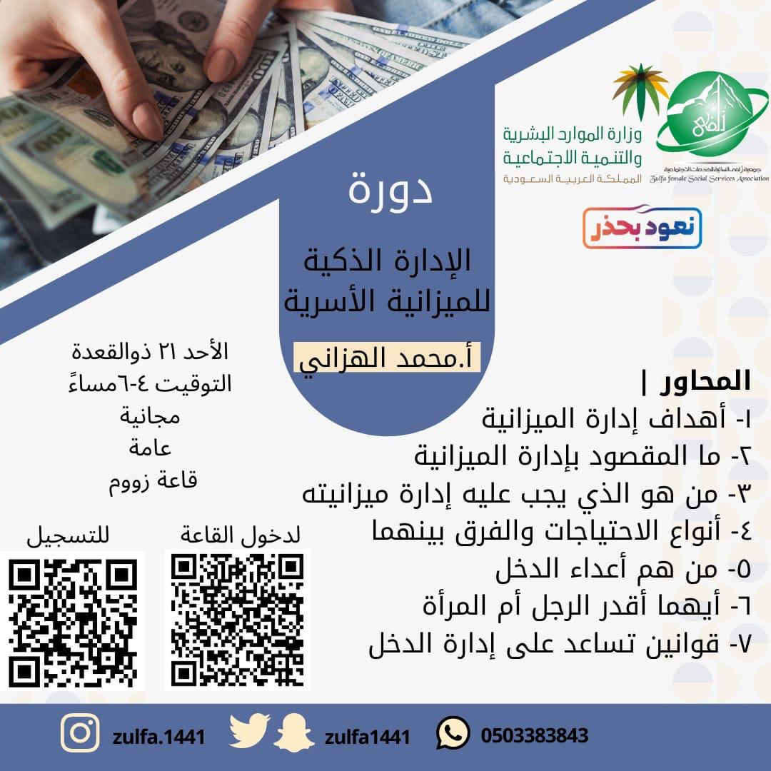 صحيفة الكسر دورة الإدارة الذكية للميزانية الأسرية يقدمها المدرب محمد الهزاني السعودية الزلفي