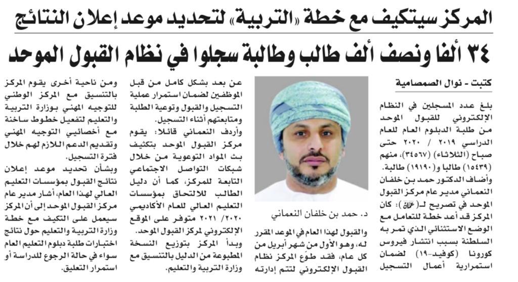 مركز القبول الموحد يعلن نتائج الفرز الأول والاعلان عن الشواغر 24 سبتمبر الموقع الرسمي لجريدة ع مان